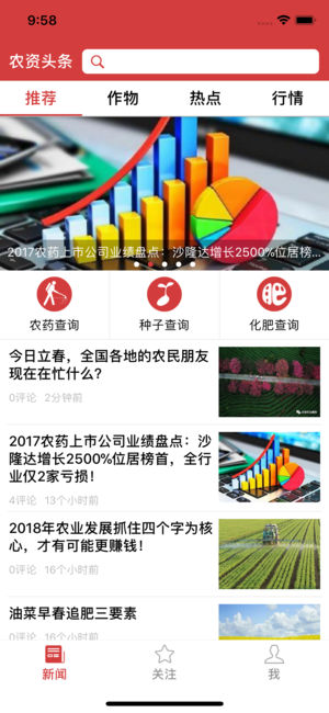 農(nóng)資頭條由農(nóng)資行業(yè)知名媒體人員共同創(chuàng)立,旨 在打造農(nóng)資行業(yè)垂直聚合資訊平臺。平臺以為農(nóng)戶、經(jīng)銷商、廠家提供最有價值信息為宗旨,規(guī)范農(nóng)資市場,讓信息更透明,農(nóng)戶的利益更受保障農(nóng)資頭條是一款服務(wù)三農(nóng)的農(nóng)資垂直資訊APP,旨在傳播正確的農(nóng)資使用方法,技術(shù),行情資訊。內(nèi)容包含,新聞,熱點作物技術(shù)診斷,熱點農(nóng)資品類專欄,農(nóng)資和農(nóng)副行情報價。