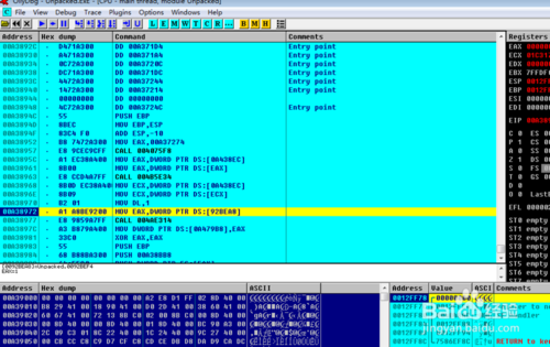 如下如所示,建議最好有一些8086的匯編基礎(chǔ),ollydbg支持動(dòng)態(tài)反匯編,所以您可以修改一些程序指令。