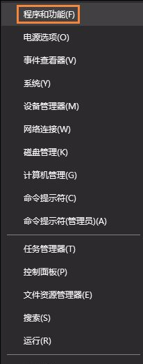 將鼠標(biāo)移到屏幕左下角點擊右鍵或者同時按下Windows徽標(biāo)鍵+X鍵,調(diào)出超級菜單,點擊“程序和功能”,如下圖所示: