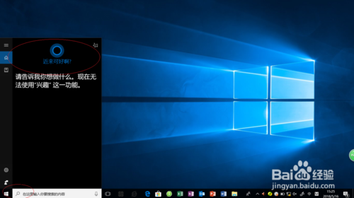 啟動Windows 10操作系統(tǒng),如圖所示。點擊任務(wù)欄搜索框,開始使用Cortana(小娜)智能語音助理。