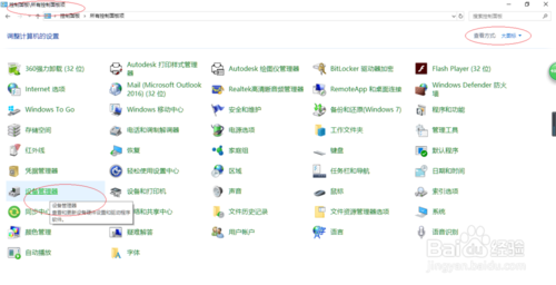 如圖所示,顯示控制面板所有項目。點擊"設(shè)備管理器"圖標(biāo),用于查看和更新設(shè)備硬件設(shè)置和驅(qū)動程序軟件。