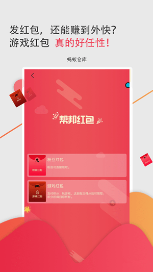 螞蟻幫邦app是一款通過(guò)娛樂化社交+娛樂化電商的方式幫助用戶賺錢的app!螞蟻幫邦app全新的社交方式能夠有效的促進(jìn)網(wǎng)絡(luò)環(huán)境中人于人之間的關(guān)系;在螞蟻幫邦app里可以和好友一起進(jìn)行別樣的互動(dòng),還可以在好友的協(xié)助下無(wú)償?shù)墨@得一些意想不到的東西!