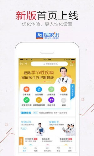 醫(yī)家訊app是一款健康智能管理軟件,醫(yī)家訊app承載了眾多的服務(wù)內(nèi)容:比如健康檢測、健康管理、運動記錄、緊急警報等。醫(yī)家訊app擁有智能手環(huán)、智能血壓計、智能血糖儀等多種輔助智能檢測設(shè)備體系。醫(yī)家訊app擁有強大的報表統(tǒng)計功能,多方面的身體數(shù)據(jù)資源整合,可為監(jiān)測服務(wù)的應(yīng)用提供有力的數(shù)據(jù)依據(jù)。