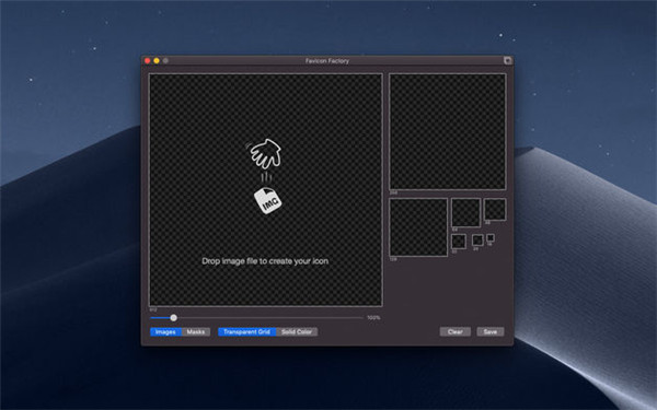只要把你需要制作的圖標(biāo)圖片的放入FaviconFactoryMac版之中即可快速制作多種尺寸圖標(biāo),你可以將圖片縮放到正確的大小,然后點(diǎn)擊“保存”。就這么簡(jiǎn)單。FaviconFactoryMac版支持將多分辨率圖片合成為ICO格式。支持預(yù)覽alpha蒙版和圖像縮放。應(yīng)用完全兼容Mojave系統(tǒng)以及黑暗模式。支持Mac視網(wǎng)膜屏幕顯示。