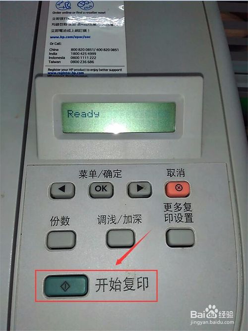 紙張邊緣在玻璃板上面對(duì)齊,打印機(jī)上面有一個(gè)示范圖,很容易就看懂,擺放好以后合上蓋板,在功能區(qū)中按“開(kāi)始復(fù)印”進(jìn)行文件的復(fù)印操作,如圖所示: