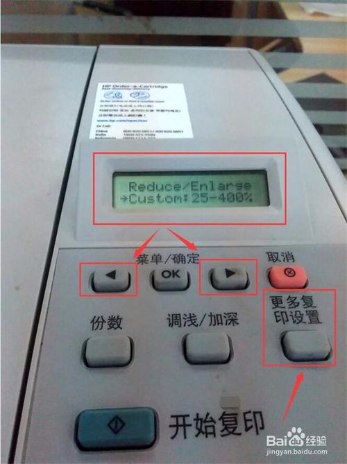 功能區(qū)中的更多功能設(shè)置,可以設(shè)置原價(jià)內(nèi)容在新紙張上面的比例,調(diào)整所占比例,打印機(jī)可以將復(fù)印件縮小至原尺寸的 25%,或者將復(fù)印件放大至原尺寸的 400%。如圖所示: