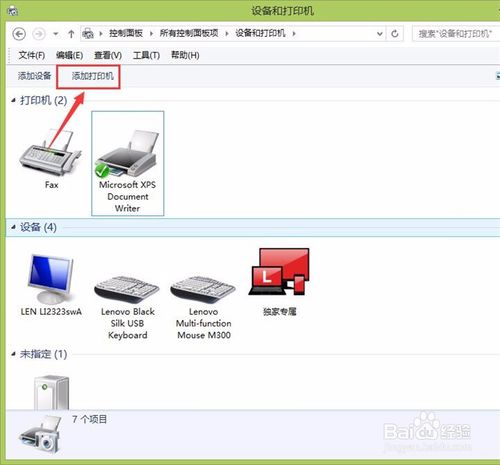 安裝打印機(jī)驅(qū)動(dòng):打開(kāi)控制面板,找到并點(diǎn)擊“設(shè)備和打印機(jī)”,然后點(diǎn)擊添加打印機(jī),如圖所示: