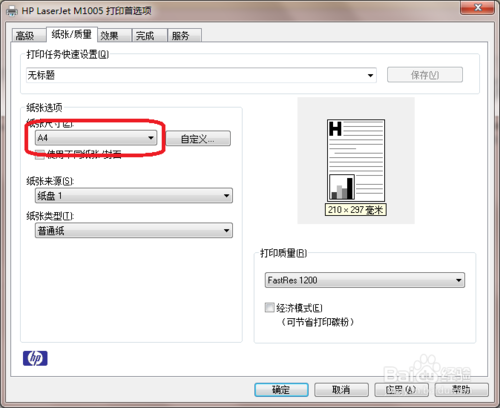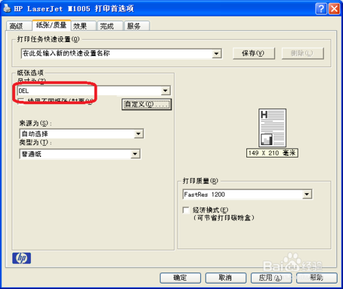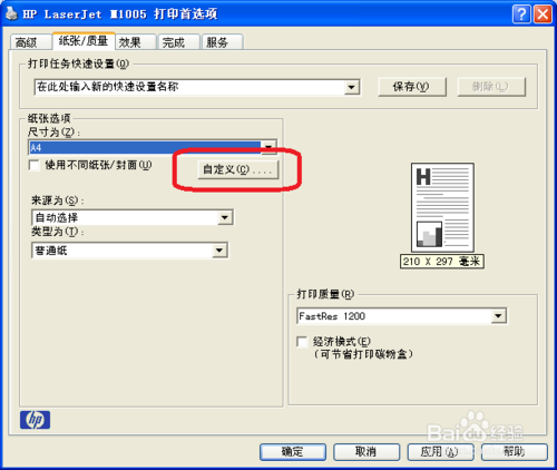 注意:設(shè)置自定義后,默認(rèn)打印機(jī)要選擇M1005,否則軟件中可能找不到設(shè)置的自定義紙張。