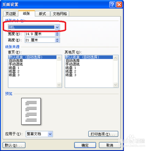 3、但是首選項(xiàng)里面的默認(rèn)紙張尺寸必須為A4,不能選擇自定義尺寸。