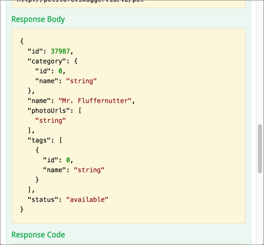 3.這里用 JSON 填充了 body value。這里的 JSON 是你必須上傳的,用于創(chuàng)建 pet 資源。