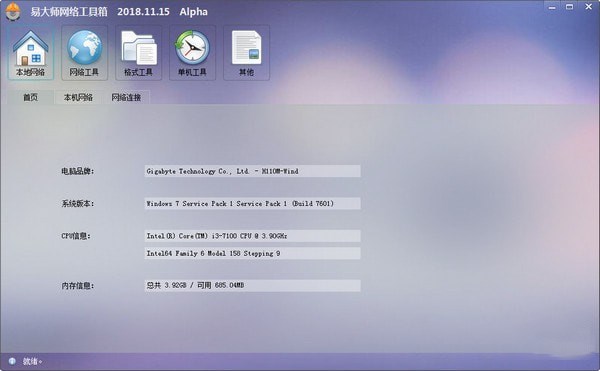 本地網(wǎng)絡(luò):顯示本機(jī)網(wǎng)絡(luò)信息、網(wǎng)絡(luò)連接及端口占用情況;