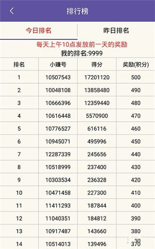 每天2048游戲該版本的2048引入了排行榜和比賽的機制。每天根據(jù)玩家的分?jǐn)?shù)生成排行榜,前50名獲得獎勵。同時還會隨機發(fā)放獎勵給用戶。