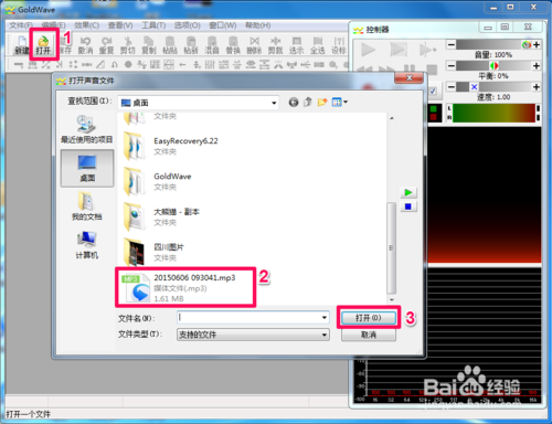 2、在Goldwave音頻剪輯軟件如快速打開(kāi)音頻文件