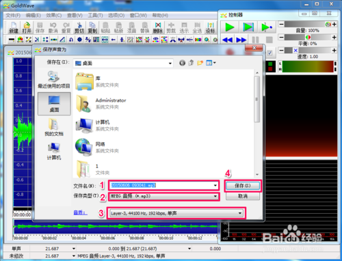 你可以更改文件名、文件格式、音質(zhì),最后點(diǎn)擊“保存”,這樣就完成了一個(gè)簡(jiǎn)單的音樂(lè)剪輯。