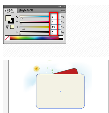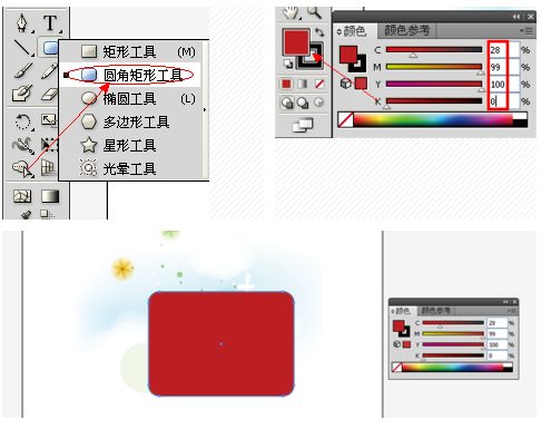 4、還是選擇【圓角矩形工具】,設(shè)置填充顏色參數(shù):在紅色的矩形上方繪制另一個(gè)矩形。(大小要比前一個(gè)稍大)如圖: