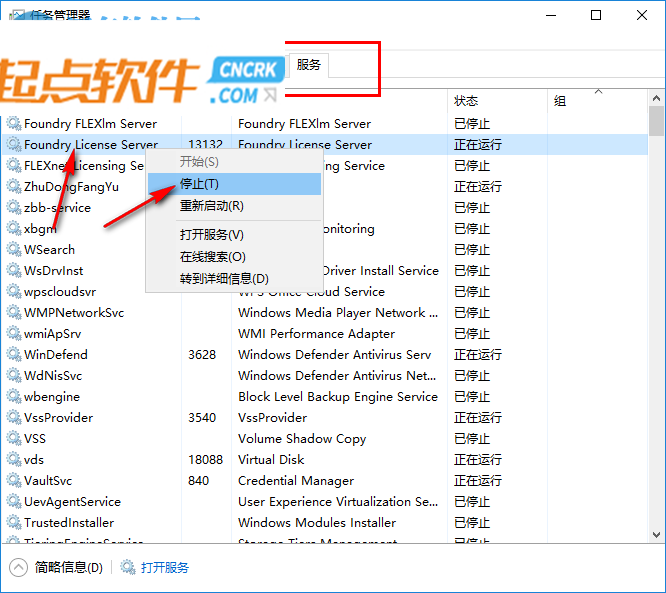 6、在任務(wù)管理器界面將Foundry License Server關(guān)閉