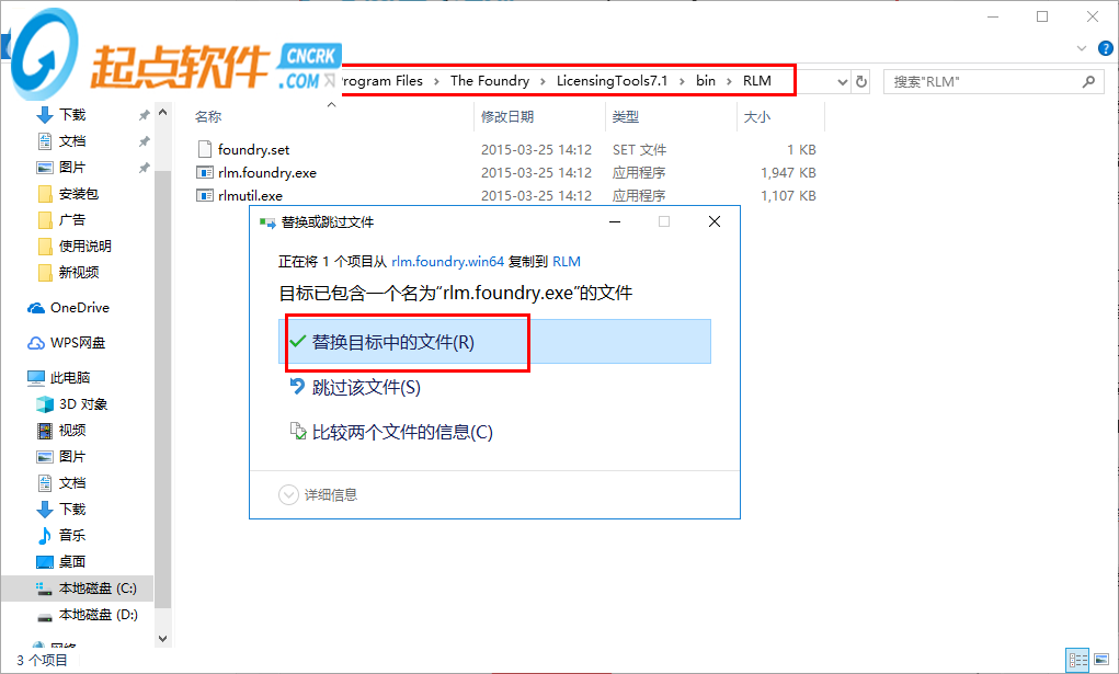 8、地址是C:\Program Files\The Foundry\LicensingTools7.1\bin\RLM,點(diǎn)擊替換