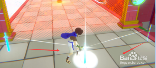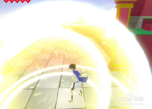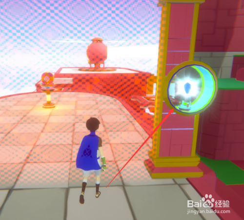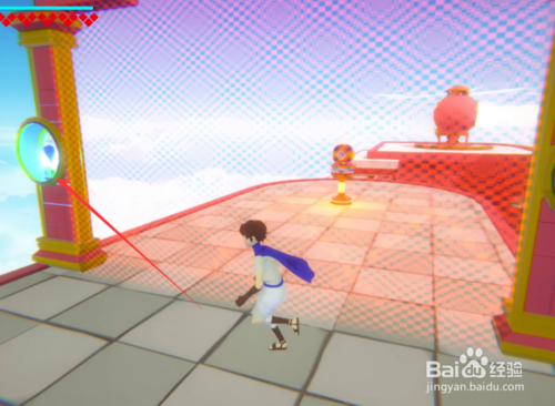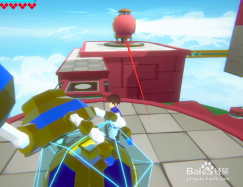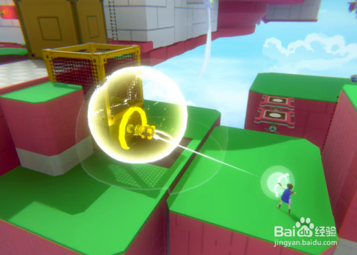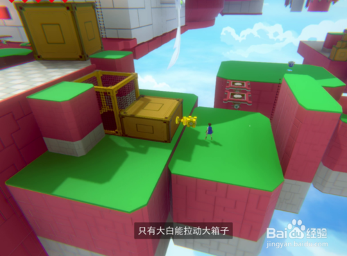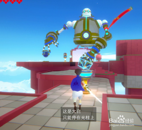 大白只能停留在這種光柱上面,而且伸手的距離也有限制,所以我們要先讓大白靠近需要拉的箱子