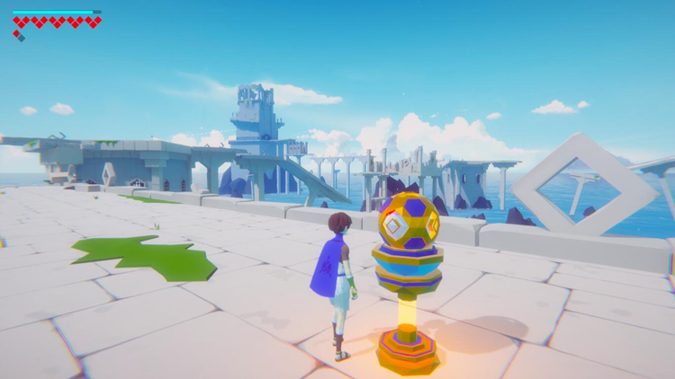 用卡通風(fēng)格和純凈顏色鋪陳出的世界,總是能博得屏幕前玩家的好感。這款游戲的畫(huà)風(fēng)和RIME異曲同工,整體印象則偏向于塞爾達(dá)傳說(shuō),戰(zhàn)斗和跳躍的過(guò)程總會(huì)讓你產(chǎn)生一些聯(lián)想。但不可否認(rèn)的是,拋開(kāi)印象上的錯(cuò)覺(jué),在實(shí)際體驗(yàn)中你將正視它獨(dú)特的一面。解謎游戲是這樣,圍繞一個(gè)核心系統(tǒng)來(lái)擴(kuò)展謎題和關(guān)卡,其中總有那么幾個(gè)環(huán)節(jié)讓你流連往返。對(duì)于這款游戲來(lái)說(shuō),這個(gè)核心系統(tǒng)顯然就是光劍。“光劍”確實(shí)是個(gè)值得展開(kāi)的題材,你可以在任意位置插上光劍并引爆它們激活機(jī)關(guān),與之匹配的是,游戲中的大多數(shù)機(jī)關(guān)也都以此為題,有時(shí)你的光劍作為開(kāi)門(mén)鑰匙使用,有時(shí)照亮眼前的道路,隨著流程推進(jìn)這些機(jī)關(guān)會(huì)伸展出更多的形式,它們總被不同的外表所包裹,所以不會(huì)給人千篇一律的重復(fù)感。