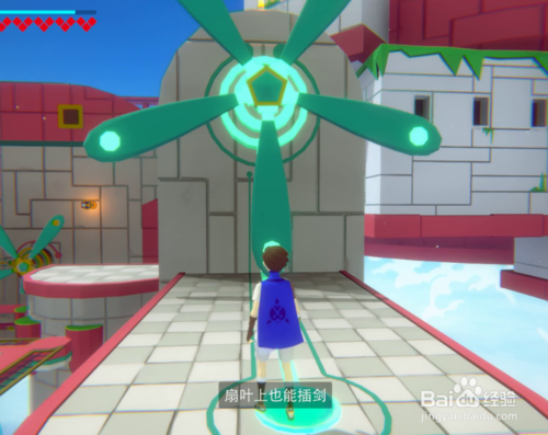 然后用弓箭瞄準(zhǔn)激活曝氣即可,我第一次在每個(gè)扇葉上都放置了一把劍,所以我射的是下面的一把,最后想想好像只要一把就可以了