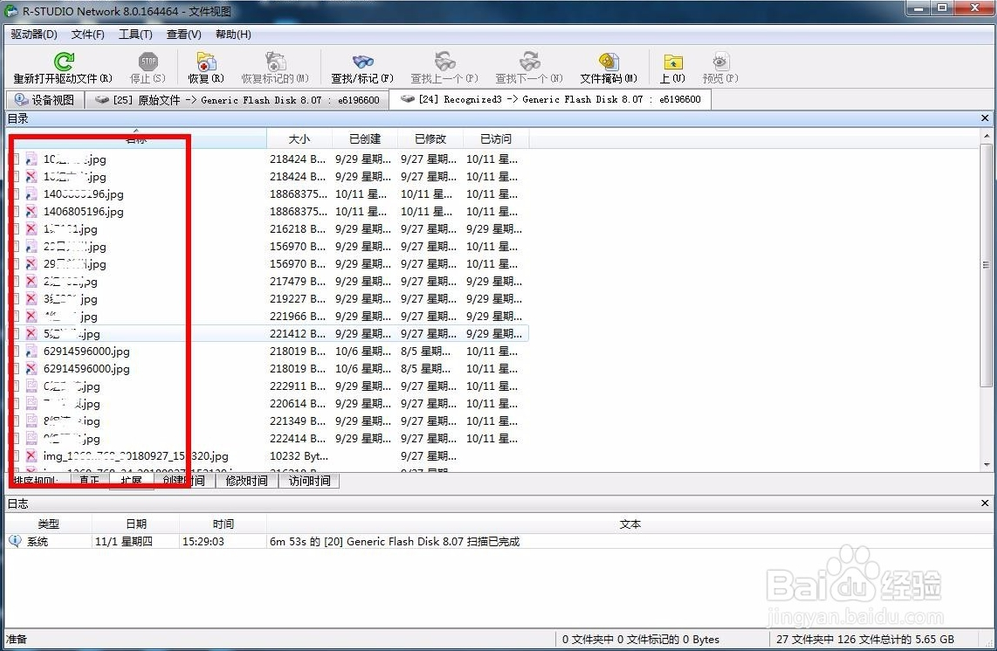 等待掃描完成后,在左邊的設(shè)備列表中就可以看到u盤名稱下邊多了幾個選項,有原始文件,還有掃描到的文件,名稱顯示的顏色也是不一樣的,選擇其中的橙色文件名稱。