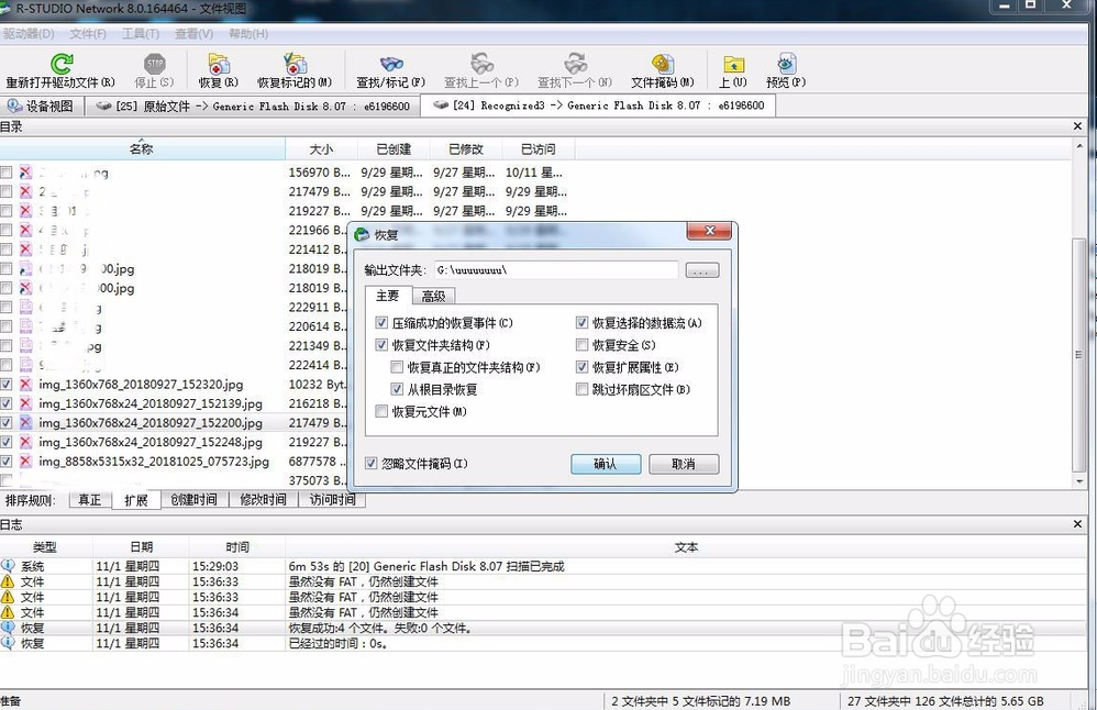 接著文件就會開始恢復(fù),恢復(fù)完成后在下方會顯示恢復(fù)的日志信息,成功或者失敗都會有顯示的,成功恢復(fù)的就可以找到保存的位置查看恢復(fù)的文件了。