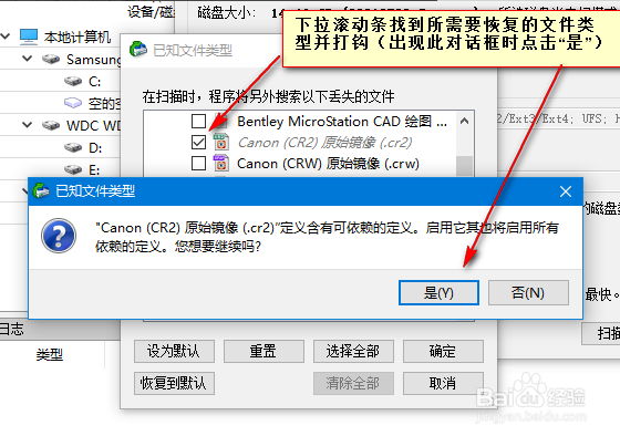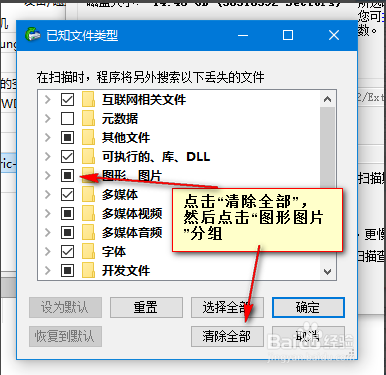 篩選文件類型(快速定位)找到需要恢復(fù)的文件類型并打勾