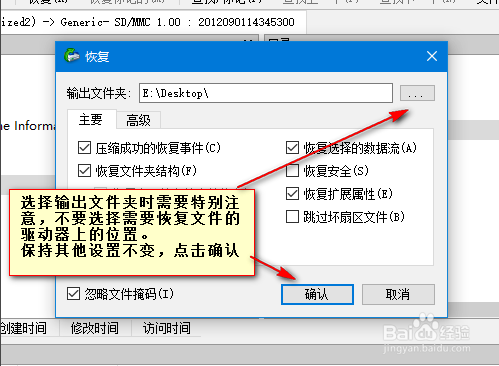 輸出文件夾,不要選擇需要恢復(fù)文件的驅(qū)動器。