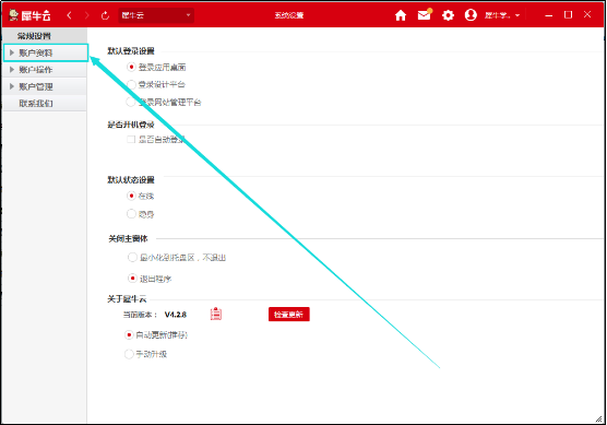 第一步:登陸犀牛云客戶端,點擊右上角圖標,進入常規(guī)設置頁面(如圖一);
