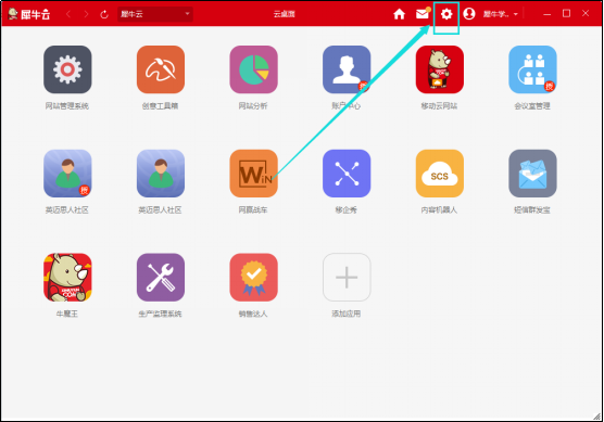 第一步:登陸犀牛云客戶端,在犀牛云桌面右上角點擊【系統(tǒng)設置】圖標,進入用戶設置頁面(如圖一);