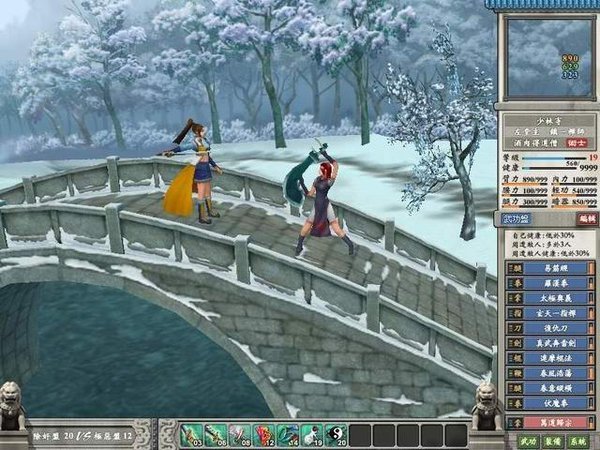 不但擁有廣大建地可供利用,且武功威力最為剛猛,尤其在拳法、棍法及武功心法方面,加上少林寺刻苦清修的生活,造就少林弟子強健過人的體魄。除此之外,總舵位于相對安全的嵩山地區(qū),并擁有武林中最高的名聲,對于入門玩家而言,是較容易上手的選擇。