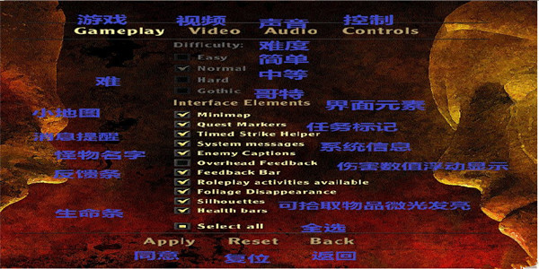 幫助那些英文不是很好的玩家們看懂游戲頁(yè)面所出現(xiàn)的英文都是一些什么意思,這樣可以讓玩家更好的完成游戲。菜單翻譯