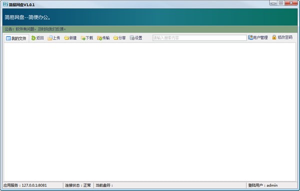 簡易網(wǎng)盤是一款在局域網(wǎng)的網(wǎng)盤軟件,可以快速進行文件傳輸,還可以根據(jù)部門選擇用戶權(quán)限管理,從而使得文件傳輸更加方便和高效,只用于文件傳輸,因為是C/S結(jié)構(gòu)的!【軟件特點】