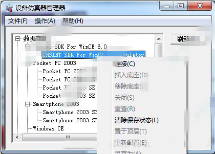 1、打開(kāi)VisualStudio 2008—>工具-->設(shè)備仿真器管理器-->選擇安裝的SDK(如圖一)右鍵-->連接
