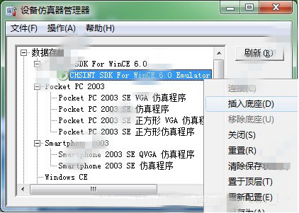 4、設(shè)備仿真器管理器-->選擇連接的SDK右鍵-->插入底座如圖