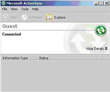 3. 選擇當(dāng)前的仿真設(shè)備,并又擊選擇Cradle,此時(shí)會(huì)看到ActiveSync進(jìn)行連接,如圖:
