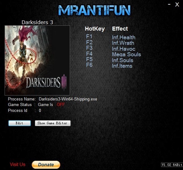 暗黑血統(tǒng)3六項(xiàng)修改器,這里提供MrAntiFun制作的修改器,包含六項(xiàng)修改功能,無限怒氣,無限浩劫形態(tài),無限靈魂等等,降低你的游戲難度。【軟件特點(diǎn)】