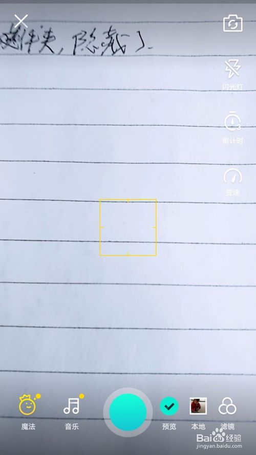 進去后可以看到拍攝視頻的界面,我們可以設(shè)置上濾鏡、音樂、倒計時等,設(shè)置完畢直接進行拍攝即可。當(dāng)然我們也能使用手機上拍攝好的視頻進行發(fā)布,點擊本地即可進入,下面我以本地視頻為例說明。