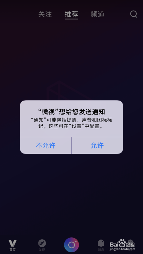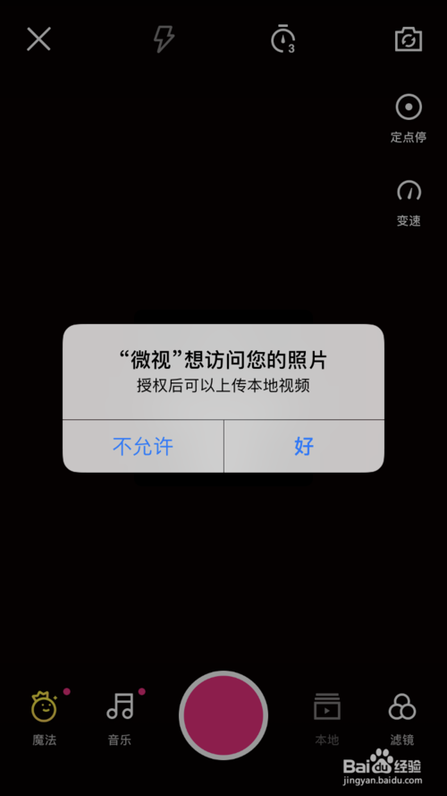再回到主頁(yè)上,點(diǎn)一下發(fā)布的小照相鍵。微視會(huì)要求我們把照片的授權(quán)給了,給完之后我們就可以在這里發(fā)視頻了。