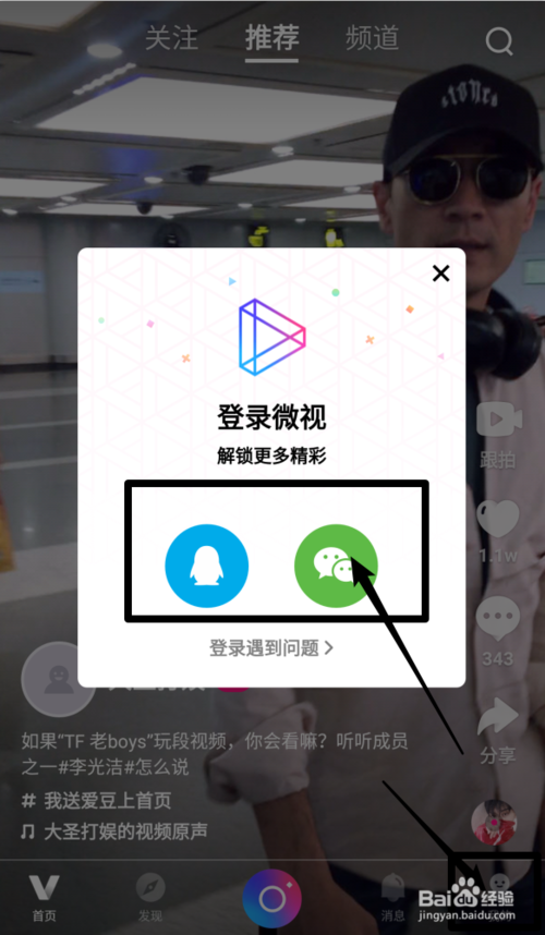 點(diǎn)擊【我的】進(jìn)行登陸微視,可以選擇QQ或者微信登陸(沒(méi)有登陸是不能下載的)