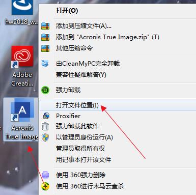 1.安裝完成后回到桌面找到Acronis True Image 2019然后點擊鼠標(biāo)右鍵——打開文件位置