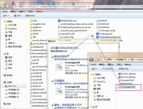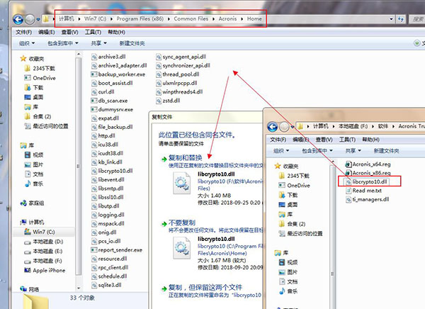 3.將破解補丁“l(fā)ibcrypto10.dll”復(fù)制到C: \ Program Files (x86) \ Common Files \ Acronis \ Home目錄下,按提示點擊“替換”