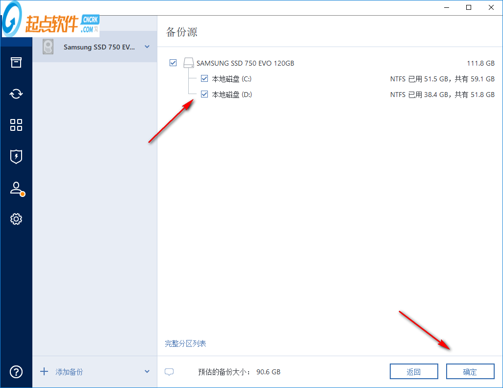 5、這里是磁盤的選擇,可以提供多個目標(biāo),可以勾選C盤D盤