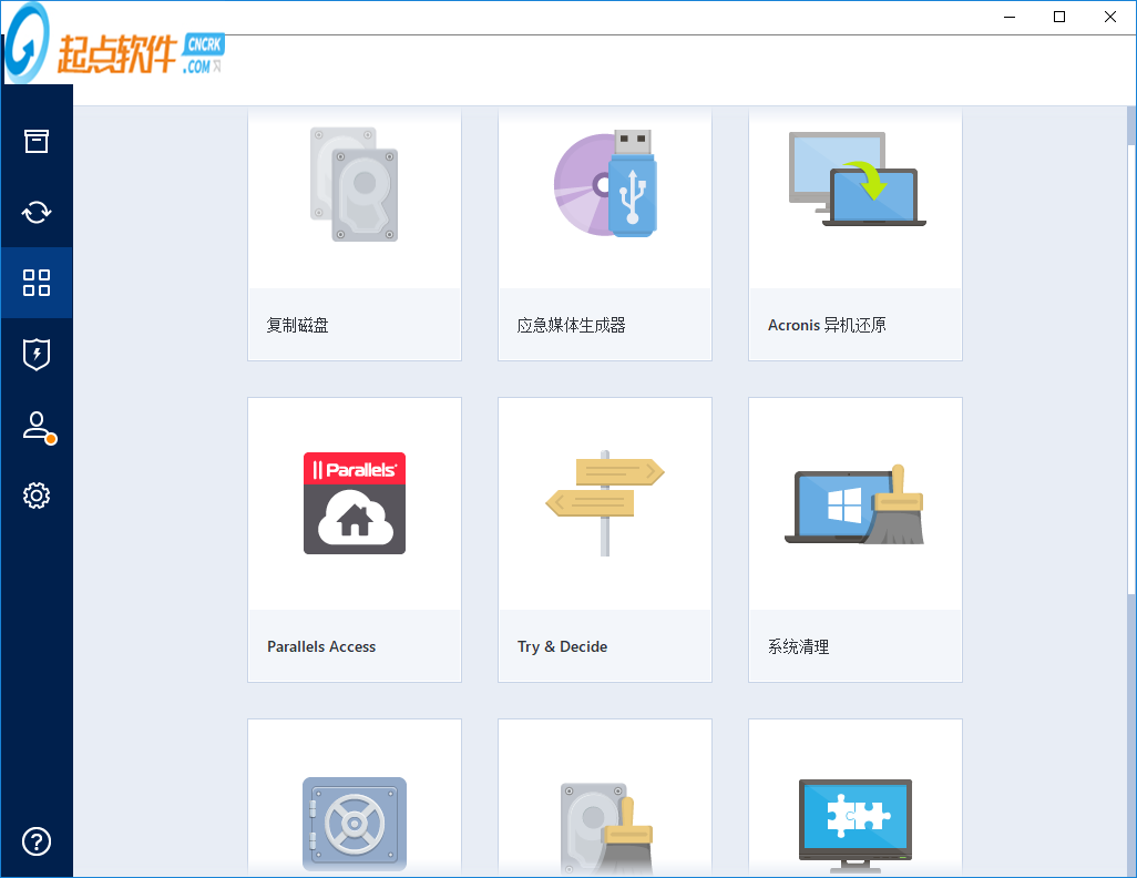 8、acronis true image 功能很多,支持復(fù)制磁盤、應(yīng)急媒體生成器、 Acronis異機還原、系統(tǒng)清理