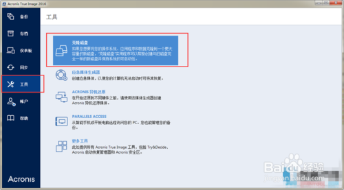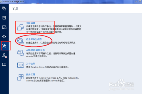 這里我們點擊工具選擇克隆硬盤或者應(yīng)急媒體生成器,區(qū)別情況圖片說明,這里我們以應(yīng)急說明