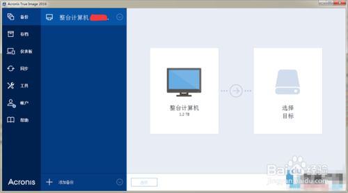 3、提示軟件的備份界面,可以對目標(biāo)選擇,可以選擇當(dāng)前的計算機備份