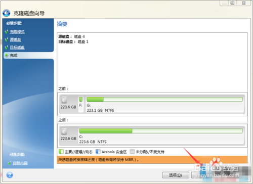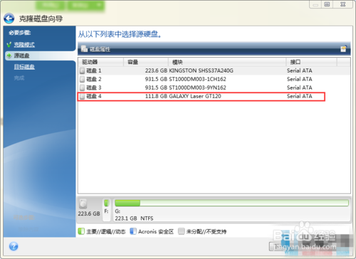 ▲然后選目標(biāo)硬盤——新買的HyperX Savage SSD,然后下一步。請注意,如果親們手上的ssd有重要資料的話,記得提前轉(zhuǎn)移或者備份,否則是直接強制寫入,強制覆蓋克隆的。