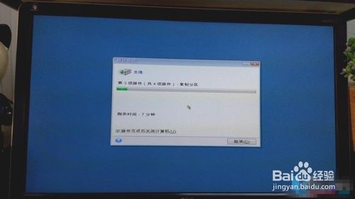 ▲重啟之后,需要耐心等待,電腦會自動引到到克隆硬盤的PE界面,此時是全自動,你除了能點取消,其他都是不可操作的。 你靜靜看他裝逼就可以了。