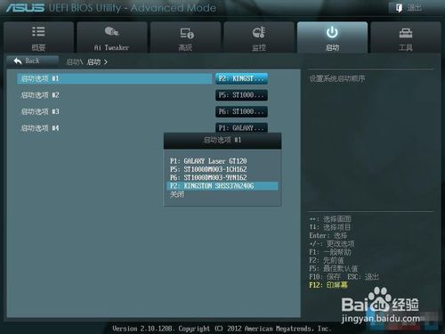 ▲重新開機時,按住del/F2按鍵不放,進入bios。因為每個主板的bios風(fēng)格不同,但是一般都在啟動頁面下的,硬盤啟動選項下面,把第一啟動順序改成新的硬盤。