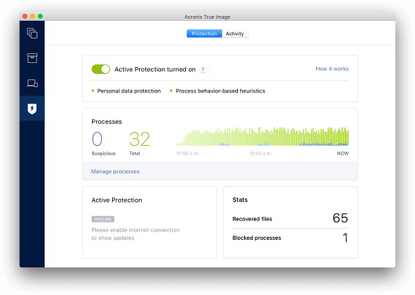 每個版本的 Acronis True Image都附帶防勒索功能Acronis Active Protection,這是人工智能和基于機器學(xué)習(xí)的技術(shù),可以檢測并阻止勒索軟件,并自動反轉(zhuǎn)其影響。兼容所有頂級的反惡意軟件解決方案。